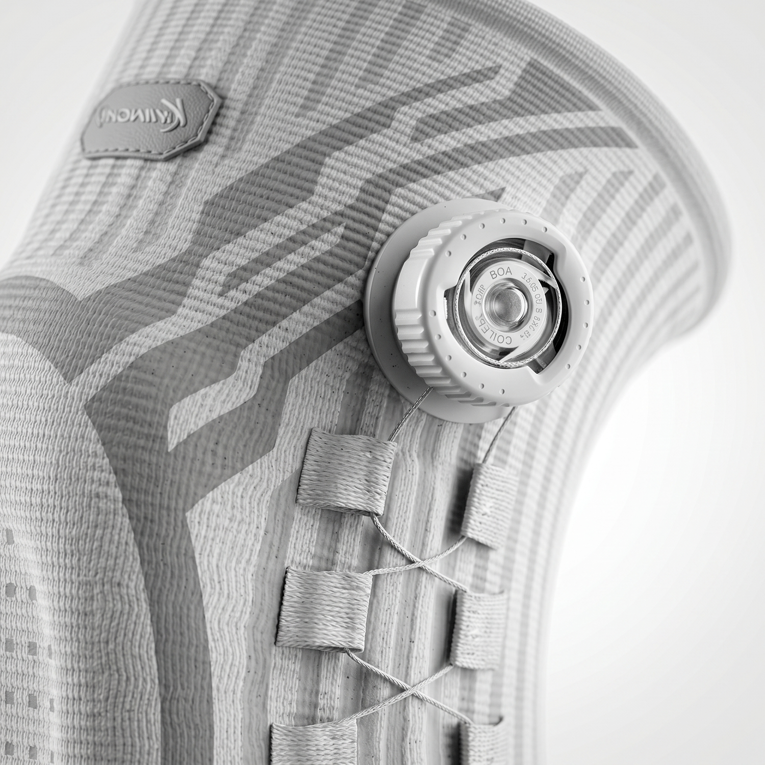 Forget about slipping braces or digging Velcro straps. Our innovative dial-closure system allows you to adjust the compression exactly to your needs with just one simple turn. The fine micro-wires distribute pressure evenly, providing a stabilizing fit that adapts perfectly to your every move.